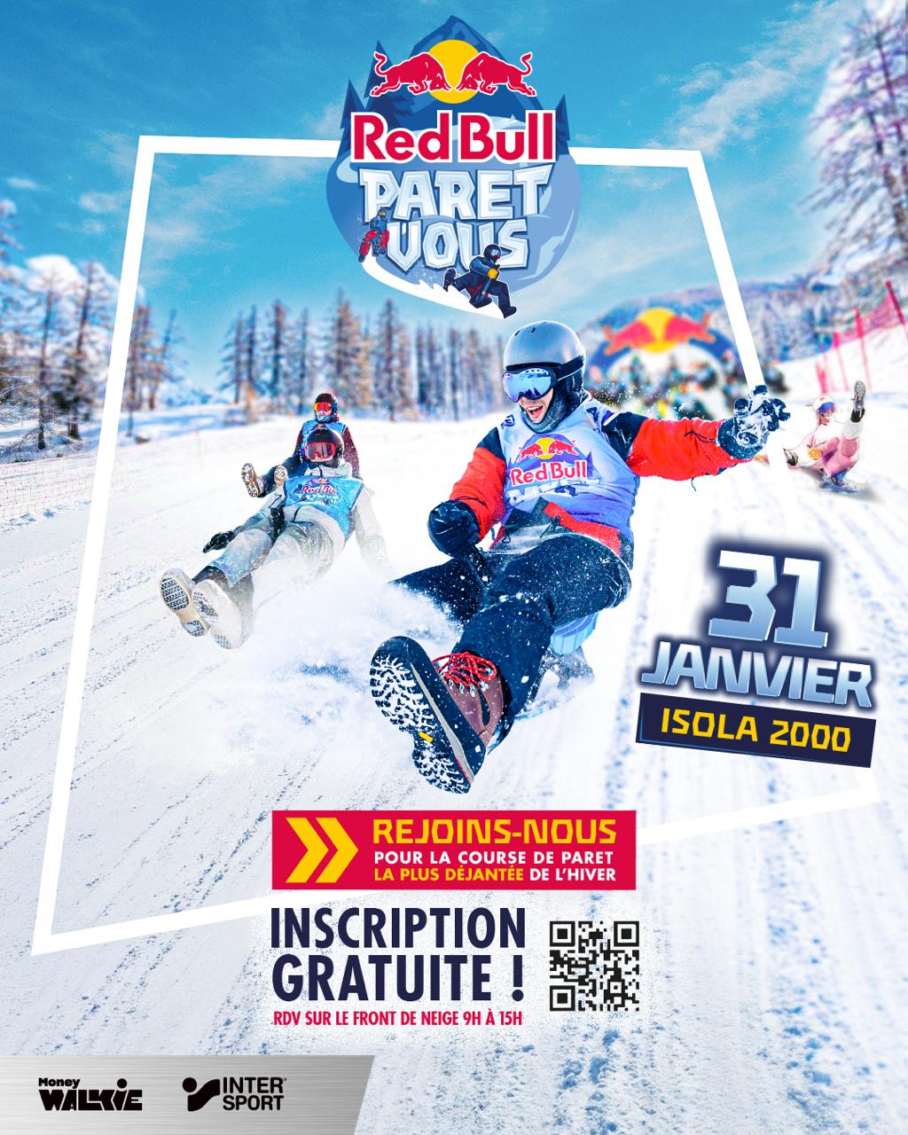 Que vous visiez le podium ou que vous souhaitiez simplement vivre une expérience hors du commun, le Red Bull Paret Vous à Isola 2000 est l’événement à ne pas manquer cet hiver. Vitesse, dépassement de soi et ambiance électrique sont au rendez-vous.