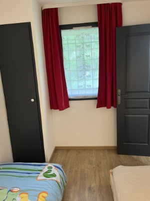 Bedroom: two single beds (can be pushed together to make a double bed or stacked to save space) + wardrobe.