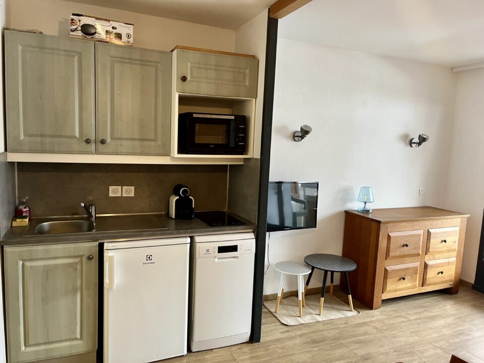 Kitchen open to the living room: dishwasher + refrigerator + 2-ring ceramic hob + mini oven + filter coffee machine + Nespresso machine + toaster + kettle + raclette machine + all kitchen utensils + crockery + storage space